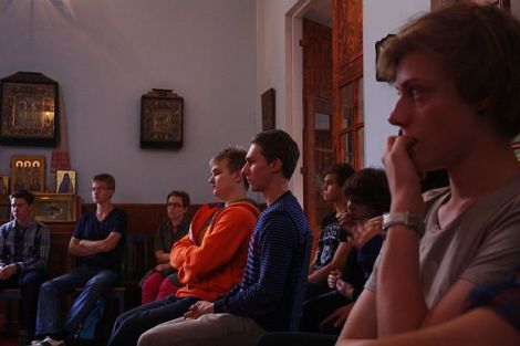 Uskonnon kakkoskurssilla tutustutaan eri kristillisiin kirkkokuntiin, niiden historiaan, nykypäivään sekä niiden yhteiskunta- ja kulttuurivaikutuksiin. UE 2.1 -kurssin kanssa kävimme keskiviikkona 12.9.2012 ortodoksisessa Kristuksen taivaaseenastumisen kirkossa Tikkurilassa. Kirkkoa, ortodoksista uskoa ja elämää meille esitteli isä Mikael Sundkvist.