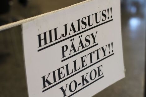 Yo-kirjoitukset alkoivat Tilussa. Liikuntatilat on suljettu ja aulassakin pitää hiiviskellä tavallista hiljaisemmin. Kuva: Antti Pentikäinen.