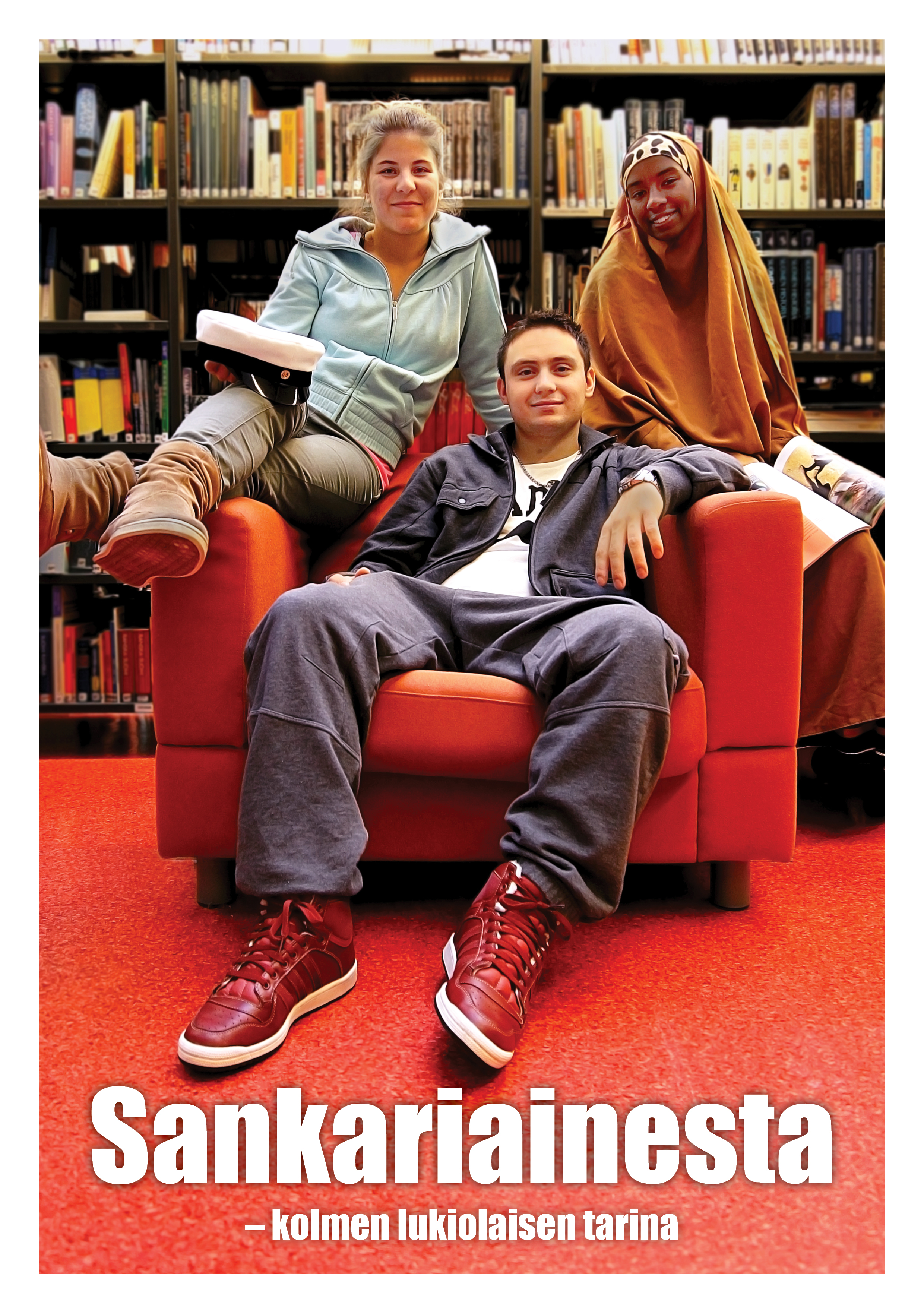 Sankariainesta – kolmen lukiolaisen tarina kertoo tilulaisten opiskelijoiden elämästä.Vasemmalta oikealle: Marlen Griffel, Pavel Savin ja Khadan Ahmed. Kuva: Lari Koponen.
