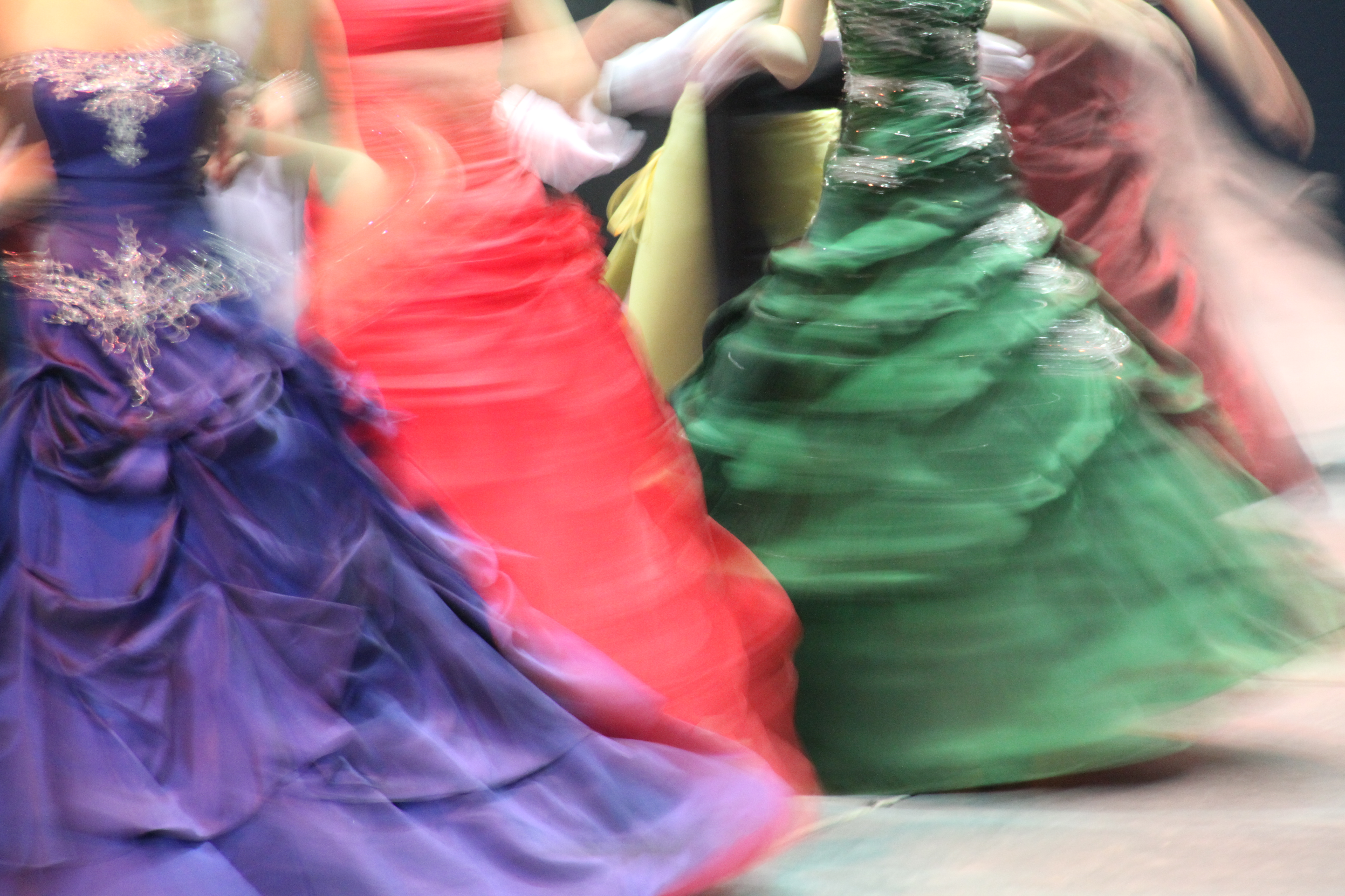 Tärkeä osa wanhojen tansseja on ikäluokan oma tanssi. Upeat puvut tuovat tapahtumaan juhlavuutta. Kuva: Antti Pentikäinen.