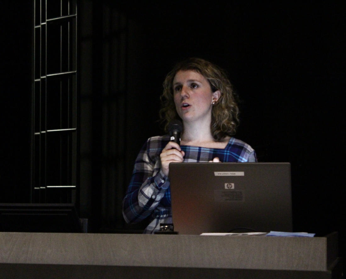 Fatbardhe Hetemajlla oli mukana diaesitys. Yleisö tarkkaili kuitenkin herkeämättä luennoitsijaa. Mikrofoniin puhui ainutlaatuinen henkilö, vasta 27-vuotias nainen, joka raivasi tiensä pienestä pakolaistytöstä merkittäväksi vaikuttajaksi.
