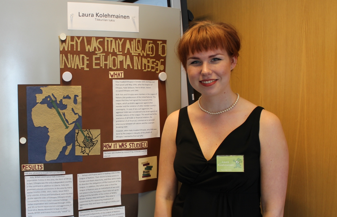Lauran palkittu tutkielma käsitteli Italian hyökkäystä Etiopiaan vuosina 1935–1936 ja sitä, miksi Kansainliiton muut valtiot sallivat sen. Hän oli kirjoittanut IB-opintoihin kuuluvan Extended Essayn samasta aiheesta. Viksua varten tekstiä piti muokata hieman.