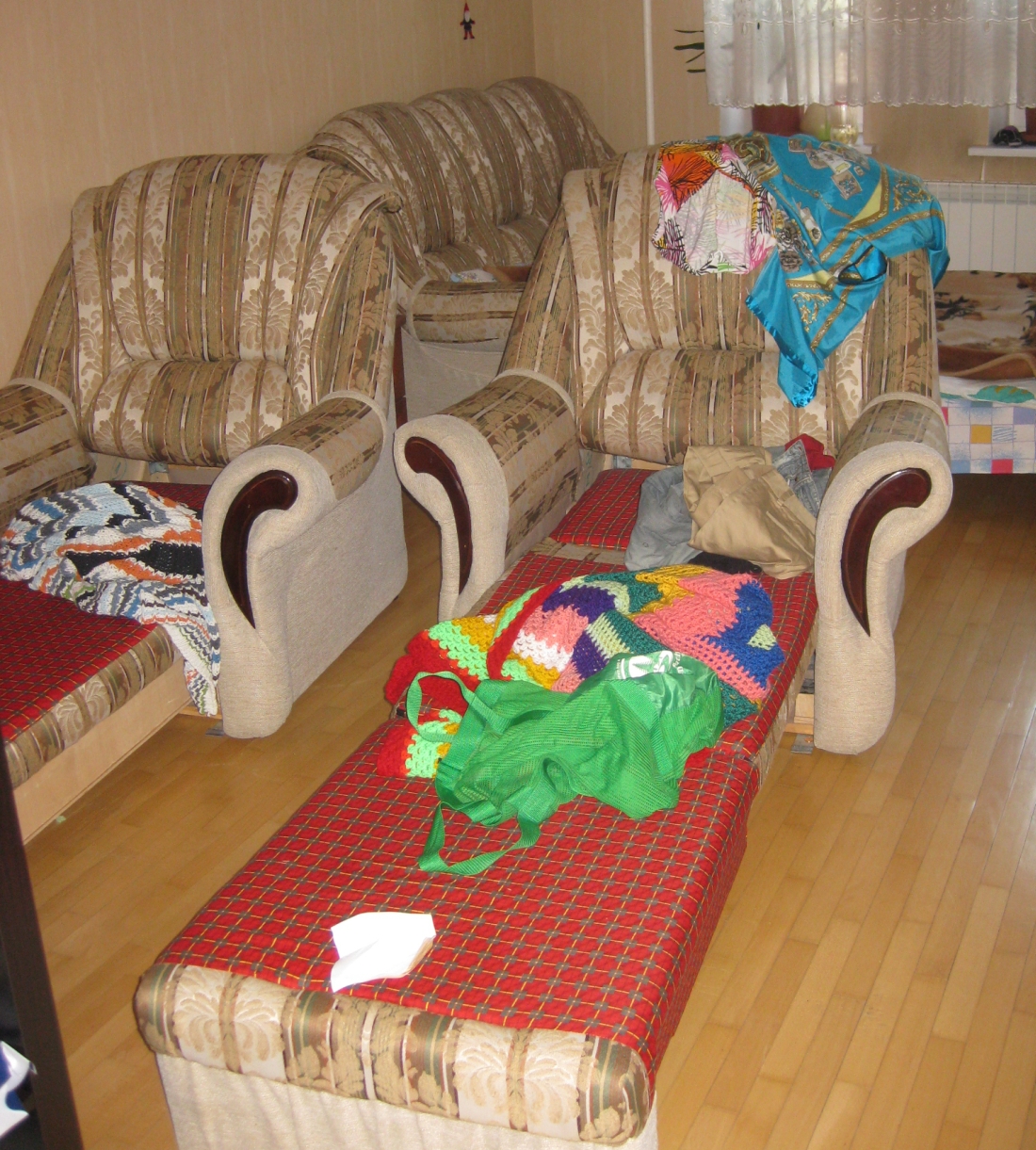 Asunnot itsessään olivat pieniä mutta siistejä venäläiseen tyyliin ja aivan täynnä koriste-esineitä. Monessa kodissa seinät oli hyvinkin runsaasti vuorattu tauluilla, julisteilla, kukilla, valokuvilla ja koriste-esineitä täynnä olevilla hyllyillä. Omalla tavallaan söpöä, kuten myös eläinkuosiset sisustusratkaisut. Monessa perheessä myös isovanhemmat kuuluivat samaan talouteen, vaikka omia makuuhuoneita ei todellakaan ollut kaikille. Useiden perheiden vanhemmat esimerkiksi nukkuivat olohuoneessa vuodesohvalla tai vuodetuolissa.