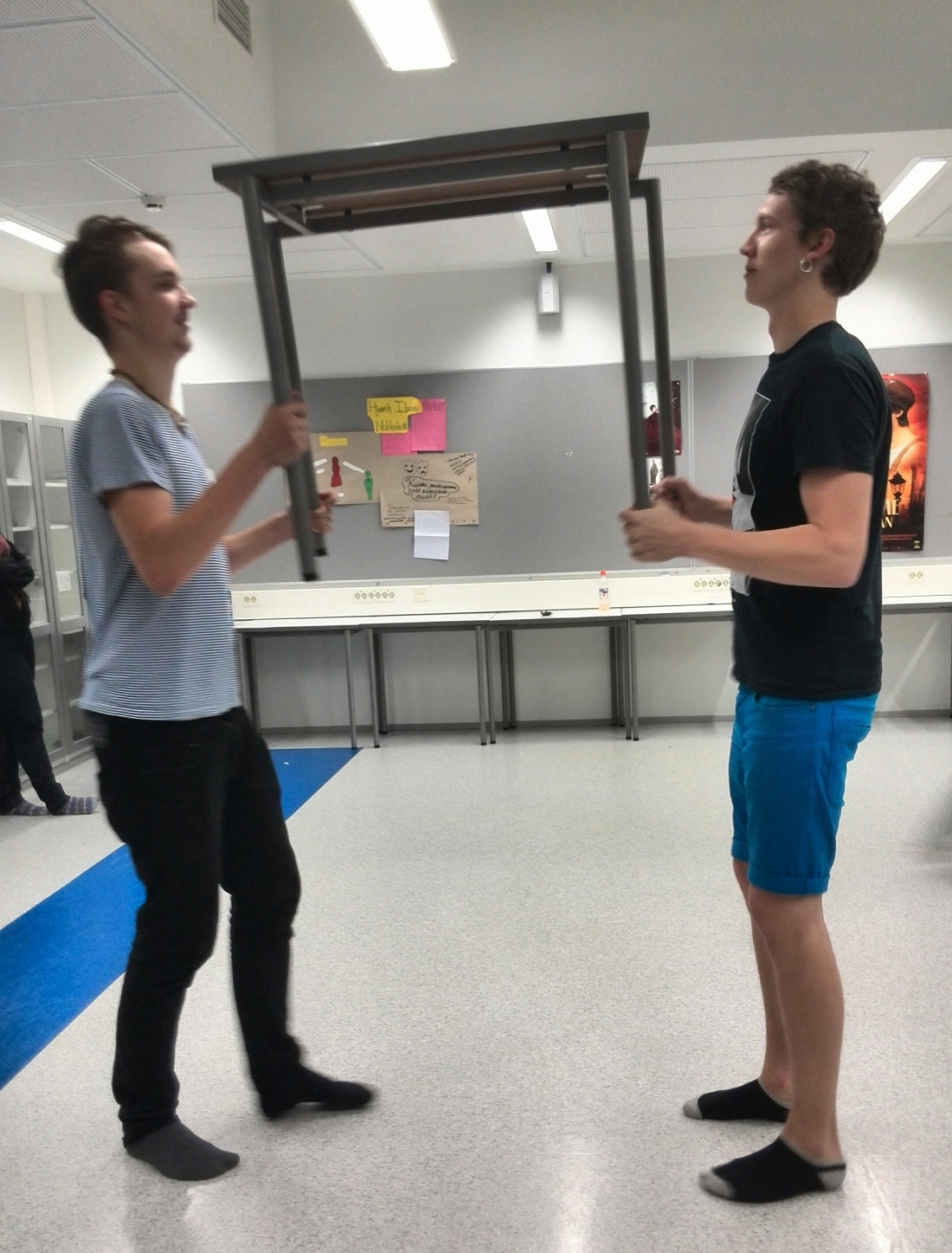 Elmo Pellava ja Marius Eklund esittävät sirkuslaisia. Marius oli mukana myös edellisessä musikaalissa. Silloin tosin vain varjokuvana. Kuva: Rebecca Hopkins.