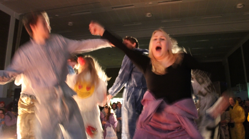Abiyleisö käyttäytyi fiksusti ja bailasi ankarasti. Tämä vuonna haalareista ei jäänyt salin parkettiin yhtään takapuolenkuvaa! Kuva: Antti Pentikäinen.