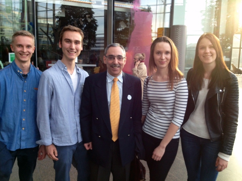 Jutun tekijät pääsivät samaan kuvaan tunnetun ja kokeneen kokoomus-poliitikon kanssa. Kuvassa vasemmalta Mikke Bergström, Valtteri Väisänen, Ben Zyskowicz, Sanni Mäki ja Matilda Heiskanen.