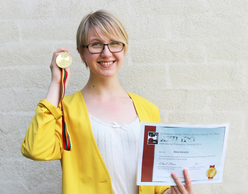 Tikkurilan lukiossa jännitetään usein, mihin toukokuun päiviin filosofian olympialaiset osuvat. IB-ylioppilaskokeet voivat nimittäin osua samoihin päiviin. Tänä vuonna tuuri oli hyvä: Elina Karastien (IB11) viimeinen ylioppilaskoe loppui torstaina puoliltapäivin, ja koululta ehti hyvin Vilnan-koneeseen edustamaan Suomea. Filosofian yhdistysten liiton järjestämät olympialaiset isännöi tänä vuonna Liettua.
