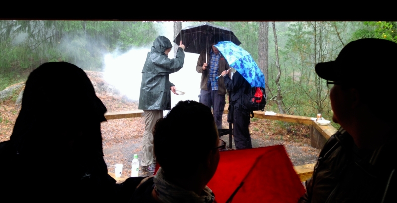 Suomen luonto kuitenkin heitti kapuloita rattaisiin ja vesikuuroja opettajien niskaan. Nuotiopaikalla raekuuro oli pilata makkaranpaiston, mutta tilulaiset kestivät urheasti koettelemukset.