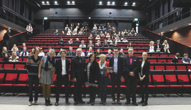 Yleisö keskittyi hiiskumatta ehdokkaiden puheisiin, vaikka osa panelisteista taisi unohtaa puhuvansa lukiolaisille. Kuva: Antti Pentikäinen.