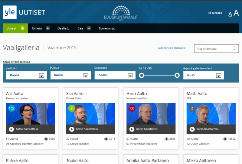 Ylen vaaligalleria löytyy osoitteesta http://vaalikone.yle.fi/eduskuntavaalit2015/vaaligalleria/. Kuva on ruutukaappaus Ylen sivusta.