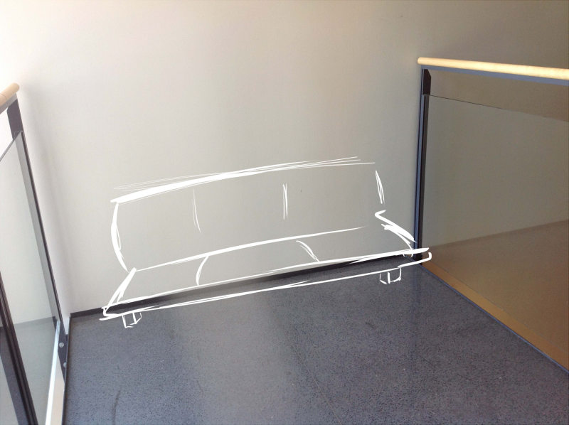 ”Sohva tms. pehmoinen istumarivistö portaikkoon. Se on kaikista hiljaisin paikka koko koulussa. Jos tämä toteutuu, sohvan viereen kannattaa laittaa roskis.”