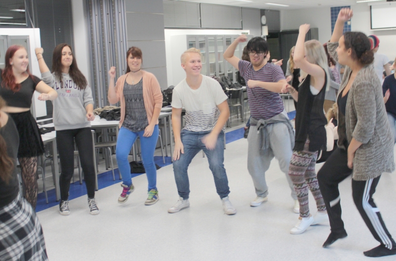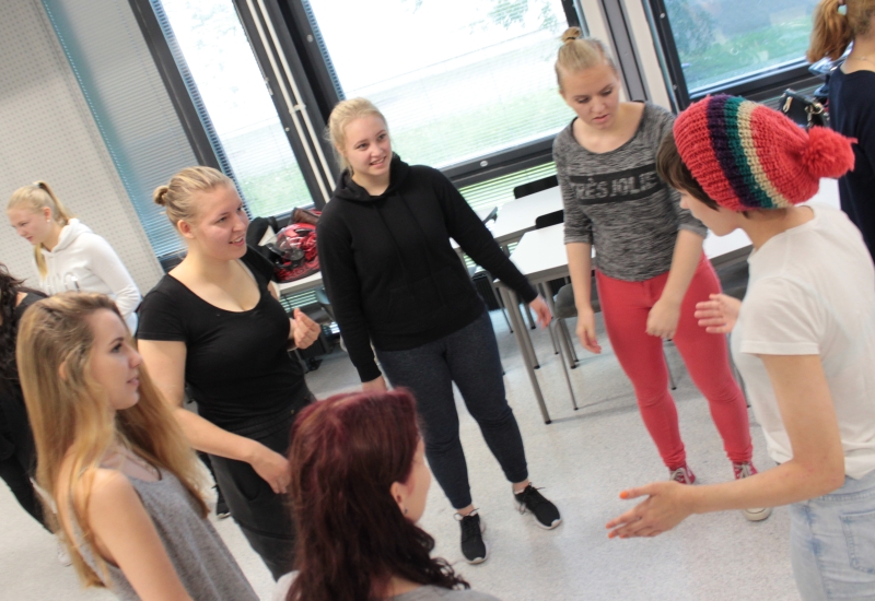 Ensimmäisissä harjoituksissa seitsemän ryhmää teki oman koreografiansa, ja lopuksi yksi ryhmä opetti omat muuvinsa koko porukalle. Kuva: Antti Pentikäinen.
