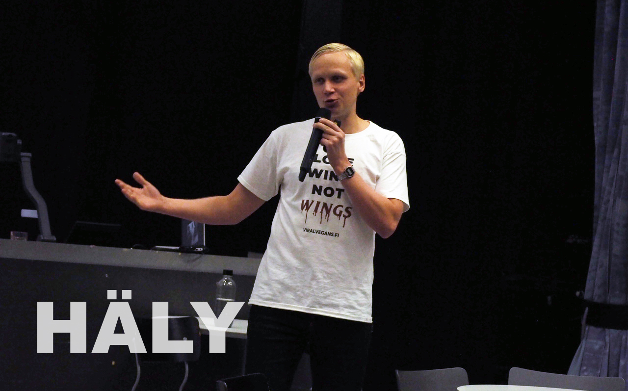 Benjamin Pitkänen on yksi Suomen tunnetuimpia eläinaktivisteja. Pitkänen vieraili Tikkurilan lukiossa viime viikolla, jolloin hän piti kaksi luentoa auditoriossa sekä osallistui OPKH:n kanssa keskusteluun. Pääsimme kaiken kiireen välissä haastattelemaan häntä.