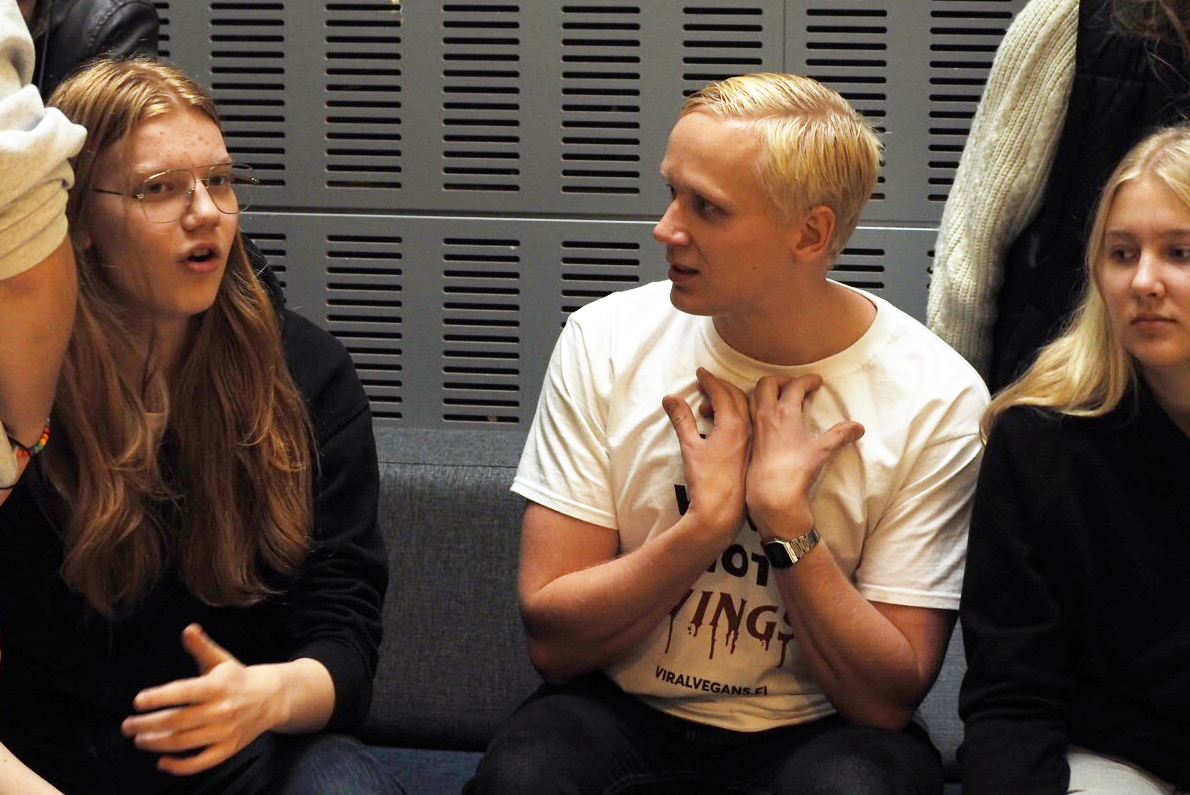 ‒ Suosittelisin ihan kaikkia katsomaan Dominion-dokkarin sekä osallistumaan Oikeutta eläimille -järjestön järjestämään vegaanihaasteeseen. Ensimmäinen askel lukiolaisen vegaanisuuteen voi olla esimerkiksi se, että syö koulussa päivittäin vegaaniruokaa “tavallisen” liharuoan tai kasvisruoan sijasta.