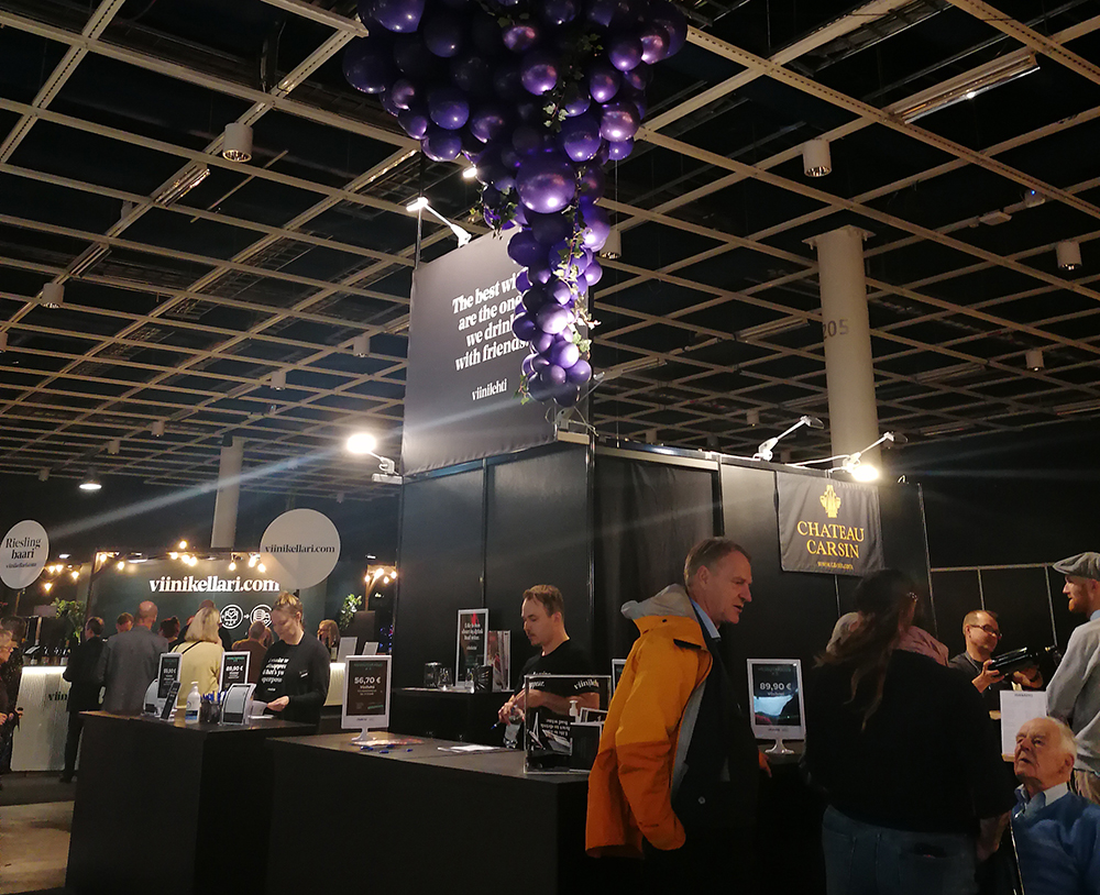 MESSUKESKUKSEN LÄNSIPÄÄSSÄ vietettiin erikseen viini- ja ruokamessuja, jonne pääsivät ainoastaan 18-vuotta täyttäneet vierailijat. Meillä oli onneksi molemmilla henkilötodistukset mukana, joten pääsimme tutkimaan tätäkin puolta tapahtumasta. Kiertelimme eri kojuja ja maistelimme kaikkia ilmaismaistiaisia mitä löysimme. Mieleenpainuvimpana jäi Virna Food -nimisen yrityksen sienistä valmistettu kasviproteiini, joka muistutti koostumukseltaan tofua. Kumpikaan meistä ei ollut aikaisemmin kohdannut mitään vastaavaa, joten olimme positiivisesti yllättyneitä. Hyvä että kasvisruoassa on entistä enemmän variaatioita proteiininlähteissä.