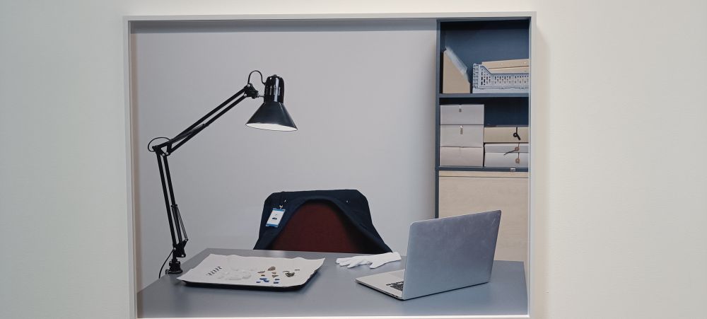 INNOSTUNEEN RYHMÄN kesken syntyi kiinnostavia pohdintoja mm. Olivia Viitakankaan työn Sirpaleenkerääjä äärellä (kuvat 1, 4 ja 5) siitä, kuinka Olivia oli luonut uuden ammatin sirpaleenkerääjä. Hän oli dokumentoinut fiktiivisen työhaastattelun ja sirpaleidenkeräys- ja arkistointiprosessin nimikkeineen päivineen.