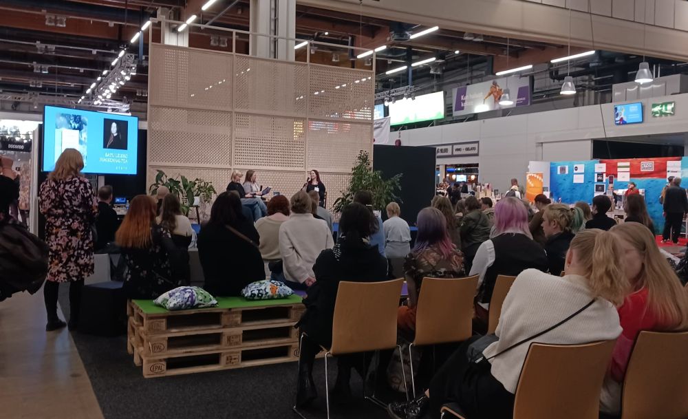 Päivän aikana teimme myös äidinkielen kurssien tehtäviä, joihin kuului osastojen etsimistä, kuvien ottamista ja messuohjelmaan tutustumista. Koulutehtävien johdosta päädyimmekin katsomaan Kallio-lavalla olevaa haastattelua, jonka aiheena oli nuoren Miska Valosin esikoisromaani Sisäsiisti. Miska Valos on nuoresta iästään huolimatta saanut paljon positiivista palautetta romaanistaan. Romaani käsittelee Valosin sanoin oman turvaverkon löytämistä ja ympäröivään maailmaan sopeutumisesta. Teos on tehty transpojan näkökulmasta ja se tutkii esimerkiksi erilaisia miehen malleja, joita kaikkia leimaa hyväosaisuus. Haastattelua oli todella mielenkiintoista kuunnella, sillä kirjailija oli hyvin nuori ja aloittanut teoksensa kirjoittamisen jo lukion ensimmäisenä vuonna, mutta silti arvostelujen mukaan onnistunut siinä hyvin. Hän toi haastattelussa esiin omia mielipiteitään ja avasi ajoittain hauskojakin yksityiskohtia romaanista. Haastattelu sai meidät lisäämään kirjan lukulistallemme, ja joku saattoi ostaa kirjan tuon haastattelun perusteella.