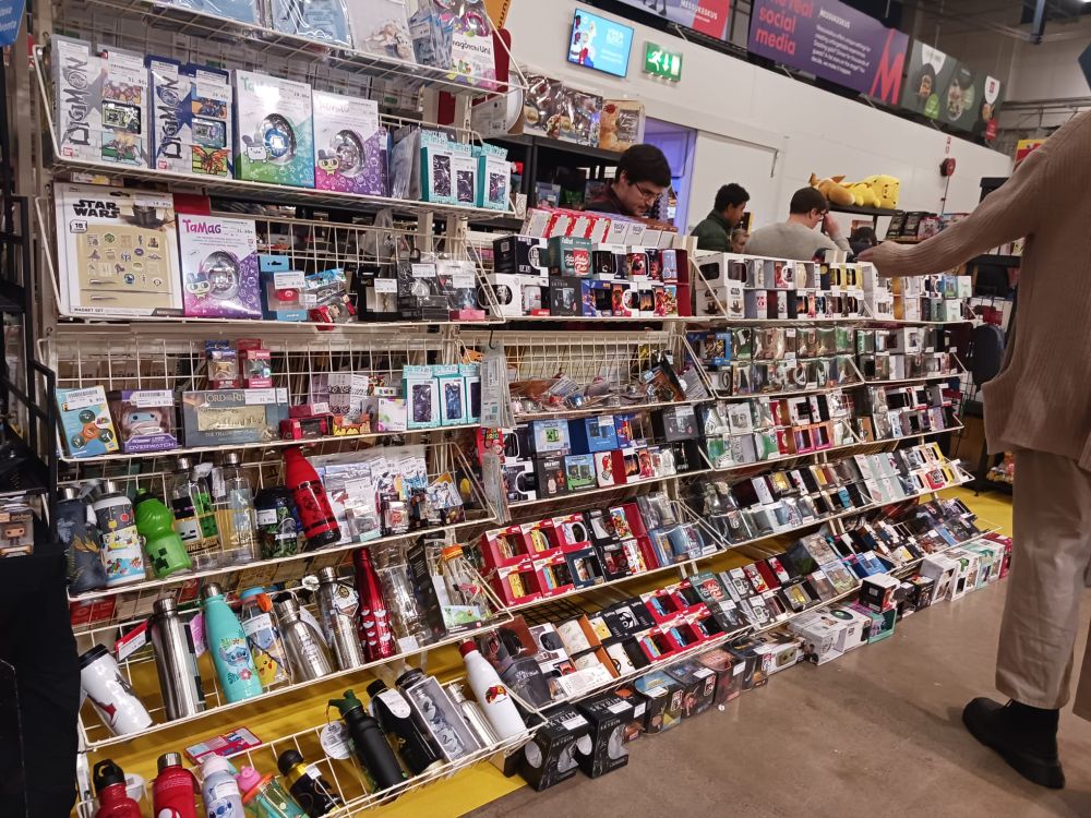 Mielenkiintoisen ja ajatuksia herättävän haastattelun jälkeen oli suunnitelmamme suunnata pelikaupoille, jotka olivat olleet lähes koko päivän mielessämme. Koju oli täynnä kaikkea peleihin ja elokuviin liittyvää tavaraa. Siellä viihdyimmekin hyvän tovin katsellen jännittäviä tavaroita ja ihastellen esimerkiksi mukeja, joissa oli eri pelien ja elokuvien hahmoja. Hyllyillä komeili myös aika paljon lapsuuden ajan lempihahmojamme, esimerkiksi Harry Pottereista ja Star Warseista.
