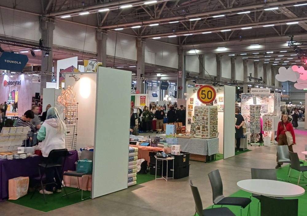 Arvostamme kirjamessuissa sitä, että ne huomioivat pienyritykset ja taiteilijat. Messualueen itäpuolella oli paljon kojuja, jossa yksityiset yrittäjät kauppasivat taidetta, käsitöitä ja paljon muuta. Kyseisiltä kojuilta löytyy esimerkiksi paljon postikortteja.