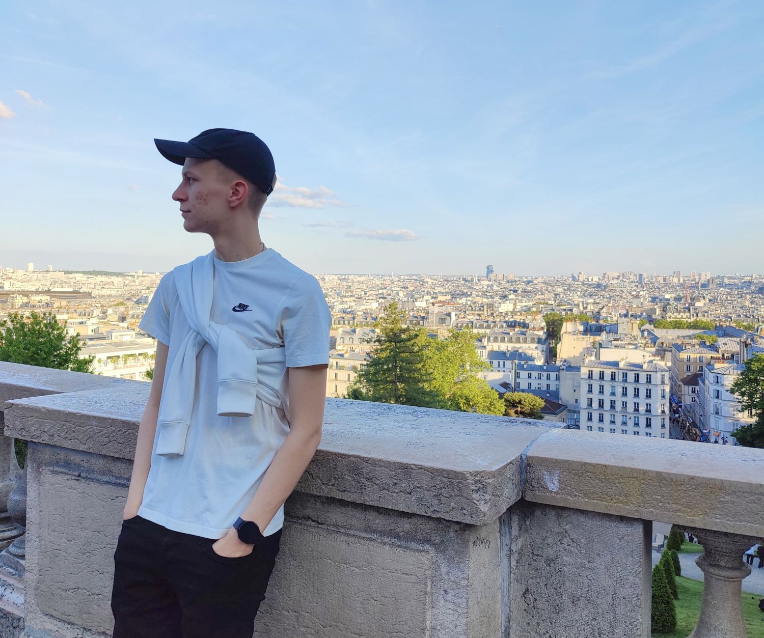 Ensimmäinen ilta päättyi Sacre Coeurin kirkolle, joka sijaitsee pienellä kukkulalla. Portaiden kipuamisen ja jalkojeni muussautumisen jälkeen pääsimme huipulle. Vastoin hokemaa huipulla ei tuullut, ja olutta tyrkyttävän katumyyjän lisäksi huipulta oli hieno näköala koko kaupunkiin. Minun oli pakko istuutua hetkeksi alas ja katsella maisemaa sekä hokea itselleni, että olen juuri nyt Pariisissa, nauti ja ole läsnä! Tämä kohde oli hieno paikka päättää ensimmäinen päivä varsinkin minulle, John Wick -elokuvan fanille, sillä Sacre Coeurin lukuisilla portailla ja tasanteella ratkaistiin elokuvan piinaavimmat hetket.