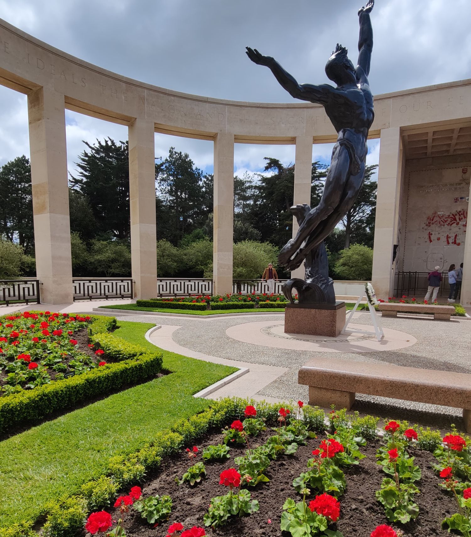 Pääsin myös kunnioittamaan kadonneen amerikkalaissotilaan muistoa. Hendrickson Chester oli pohjoisdakotalainen, jonka vanhemmat olivat suomalaisia. Kunnioitimme hänen uhraustaan lipun ja hiekan avulla, jolla korostimme nimen tuhansien muiden joukosta hautamuistomerkin pinnalta. On mielenkiintoista, että edelleen löydetään maihinnousussa kadonneiden ruumiita. Nämä myöhemmin löydetyt vainajat merkitään nimiseinään löydetyksi pienellä merkillä.