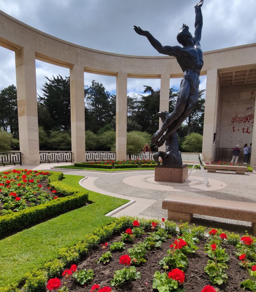 Me tutustuimme Omaha Beachiin oppaan avulla. Oppaan puhuessa katselin aavalle merelle ja kuvittelen näkyä kesäkuisena aamuna vuonna 1944. Ajatus kuolleiden määrästä ja siitä, että kaikki kuulemani oli oikeasti totisinta totta, puistattaa minua. Pääsimme oppaan kanssa vierailemaan amerikkalaisten hautausmaalla. Näky on samaan aikaan kaunis ja karmiva. Alue on hyvin vaikuttava, sillä jokainen yksityiskohta on niin viimeistelty: puut, pensaat ja hautoja merkitsevät ristit noudattavat tarkkaa muotoa. Kun näin silmien kantamattomiin peräti 9 000 hautaa, tilanne todella realisoitui itselleni.