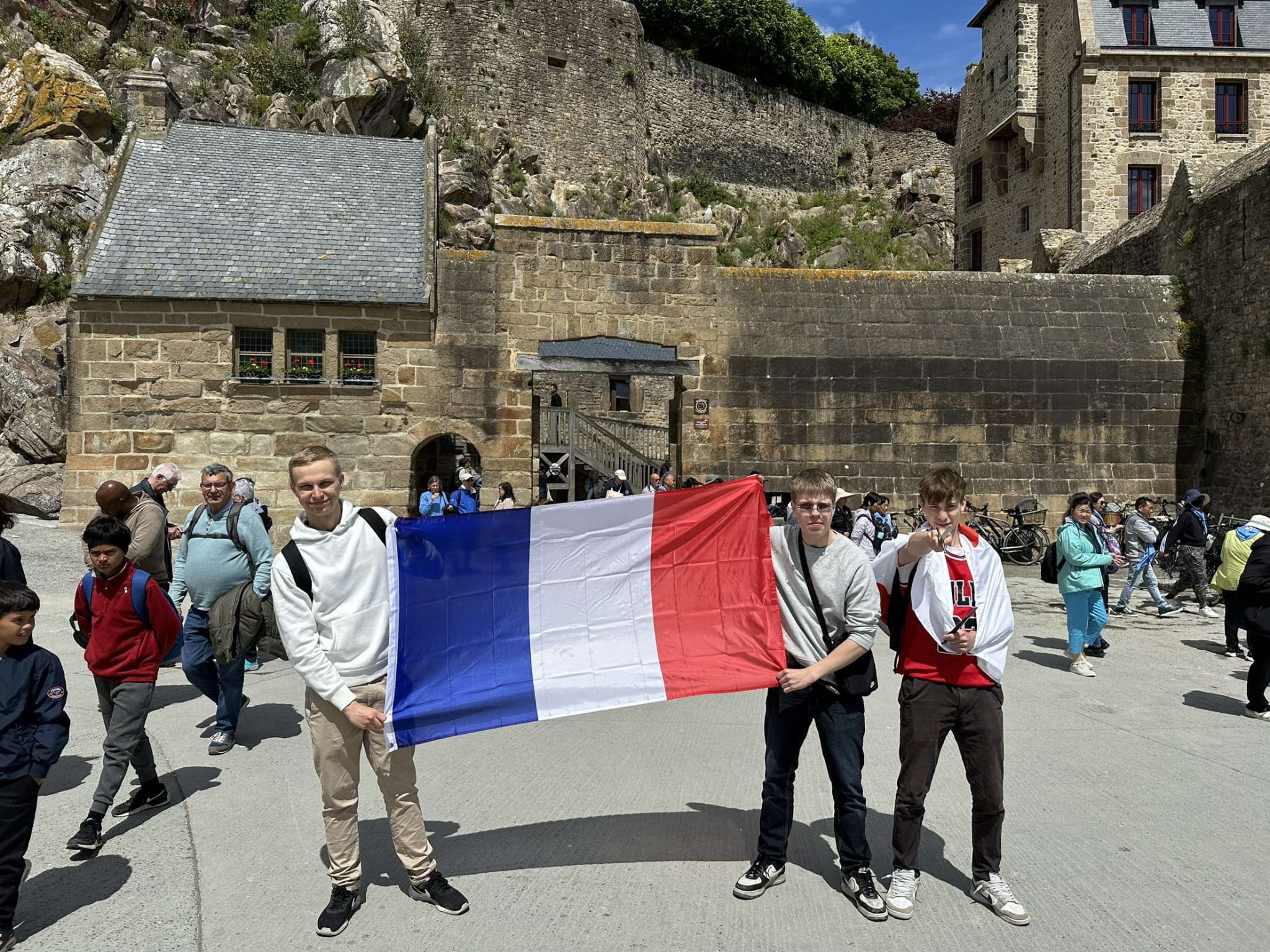 Tämä blogikirjoitus on matkapäiväkirjani tilulaisten Erasmus-kulttuurimatkasta Ranskaan! Nimeni on Henrik (pitelen lippua tuossa vasemmalla!) ja olen Tilussa toisella luokalla. Kerron teille kaiken, mitä janoatte tietää ranskalaisesta kulttuurista, historiasta, tavoista ja kaikesta muusta. Tervetuloa mukaan!