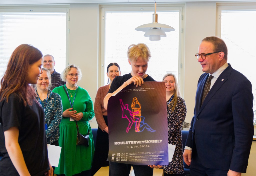 Kouluterveyskysely ja sitä kautta nuorten hyvinvointi valikoituivat aiheeksi hyvin luontevasti – koulussa kun ollaan. Vaikka moni teos käsittelee nuorisoa, ei niissä useinkaan kuulu nuorten oma ääni ja kokemus.
